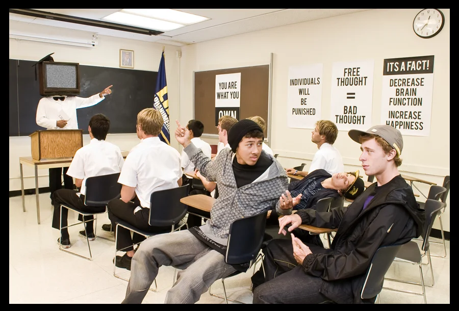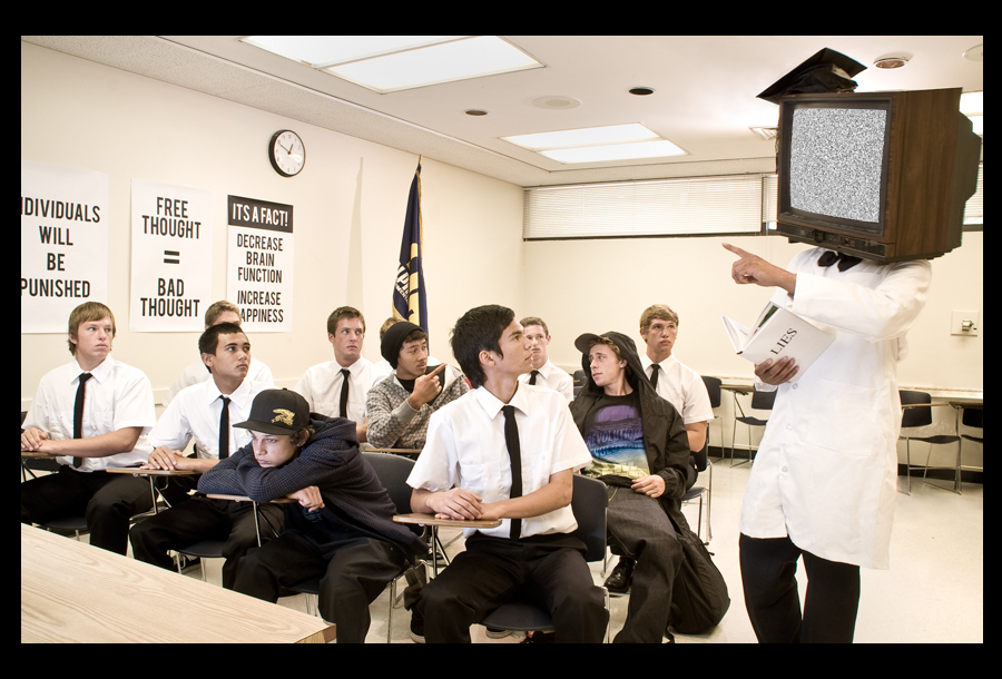 A team of skaters found this empty class room on the UCSD campus. We only had about 20 minutes before the class and professor walked in to a full class room and a man wearing tv on his head. Good times.